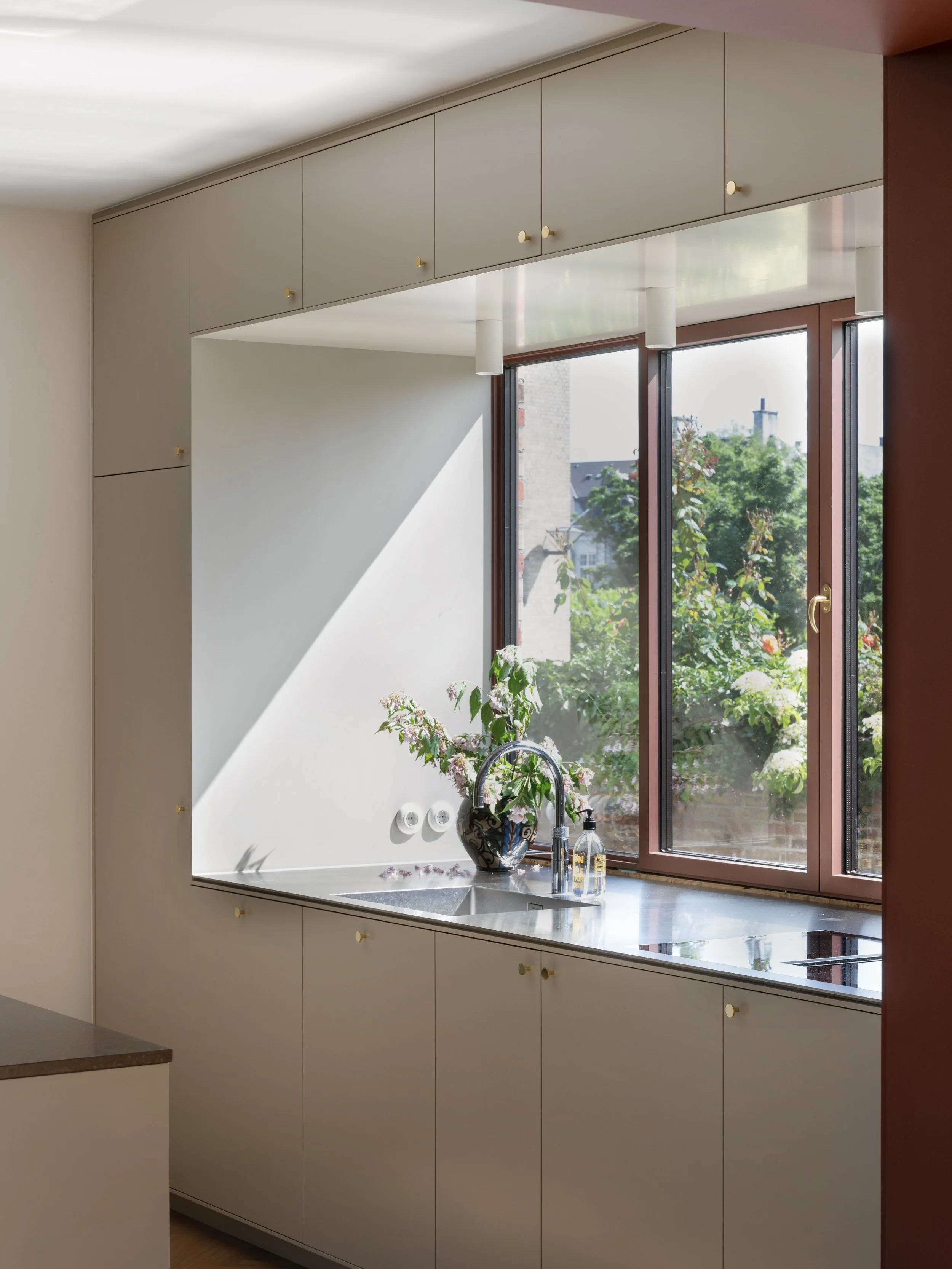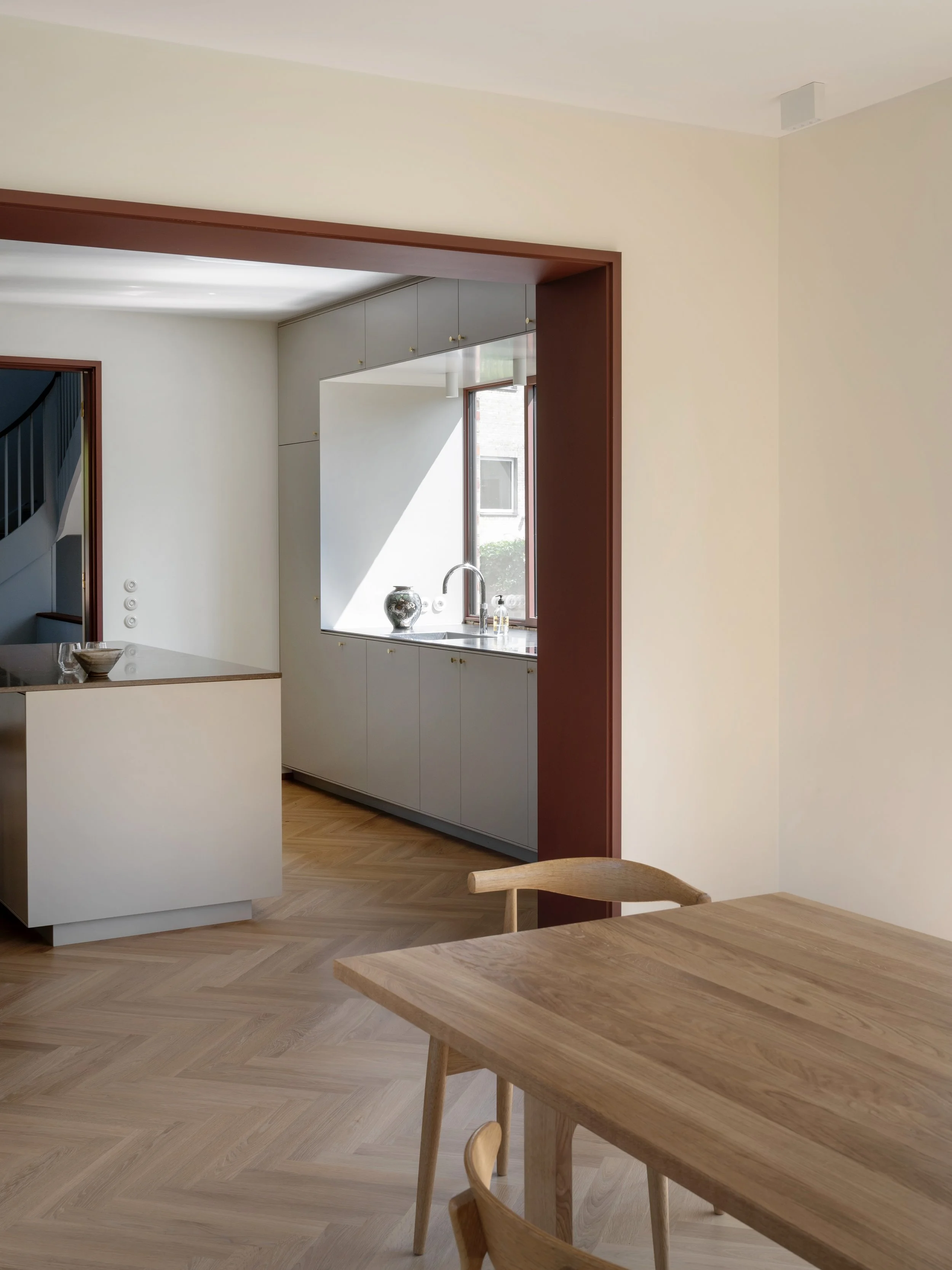 Transformation of a 1934 villa, featuring reorganised spaces, larger windows, new colours, a bespoke kitchen, and an extension.